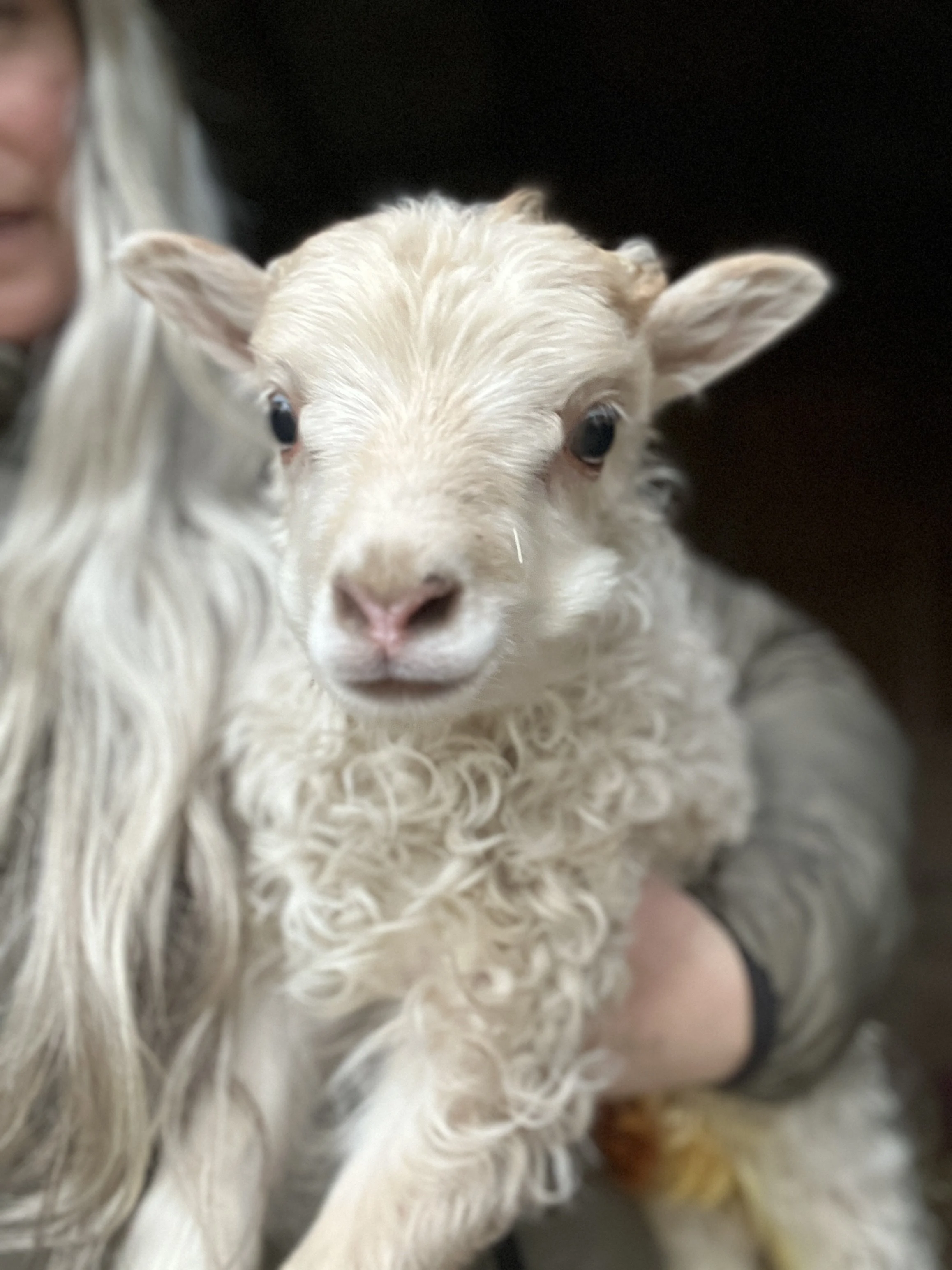 Stevie, terrible pink eye, hence the name is one of the Icelandic lambs. He came out with great horn buds and now has a fine pair of horns