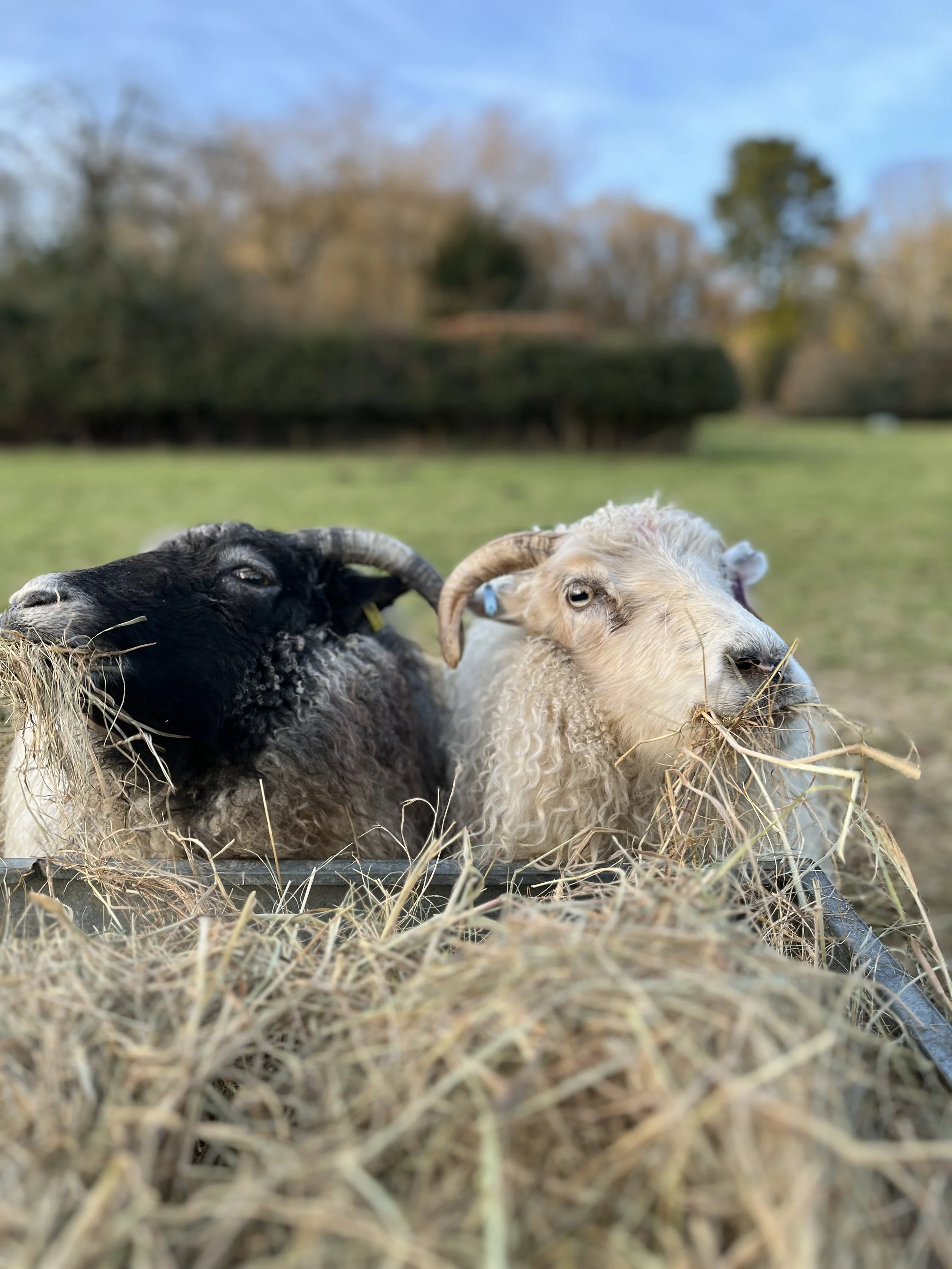 Sooty and Orla, two of our pure Icelandic’s enjoying some hay during a cold snap