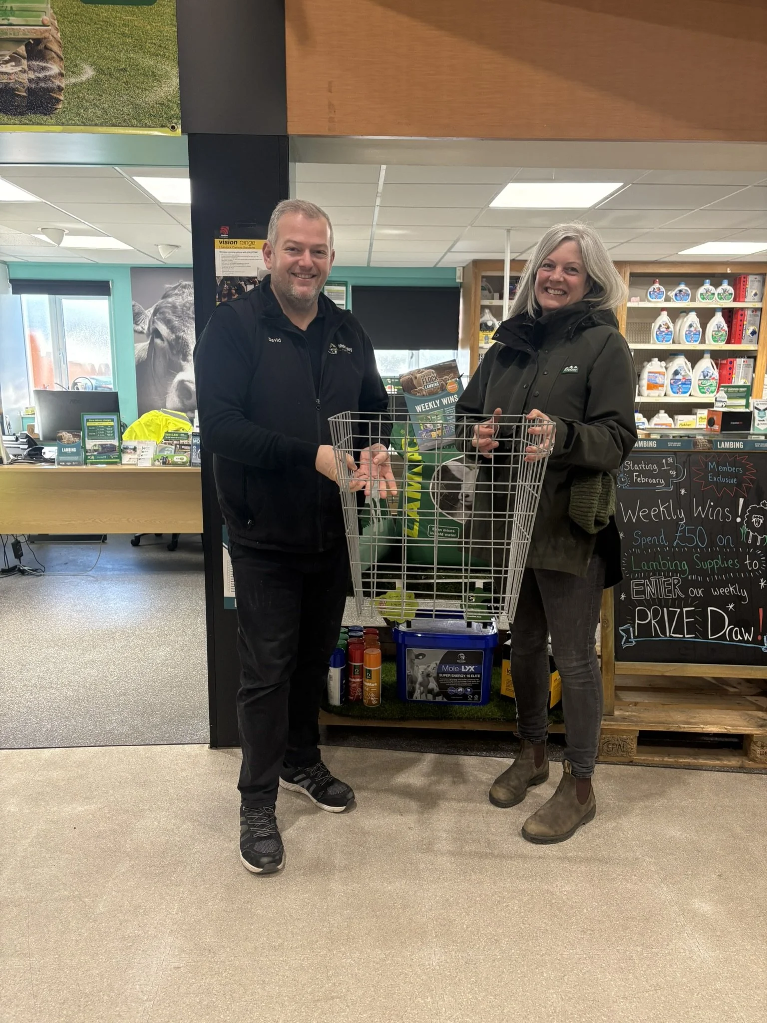 Mole Valley Farmers ran a lambing competition. If you spent fifty quid on supplies you'd be entered in. I won. A hay rack, super useful, I was thrilled as you can see from the photo, ha!