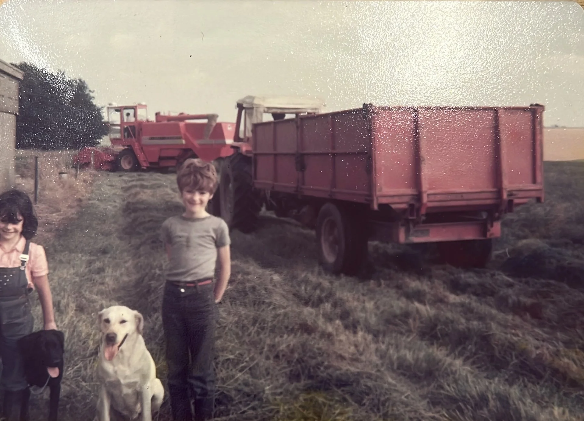 I took my Dad to Devon to see Rob Hawkins who worked on the farm when we were children. He and his wife Anne moved to Devon but Dad and Rob hadn’t seen each other for some years. Anne gave me this photo and I can only think that the photo is really of the machinery and we were just in the way!