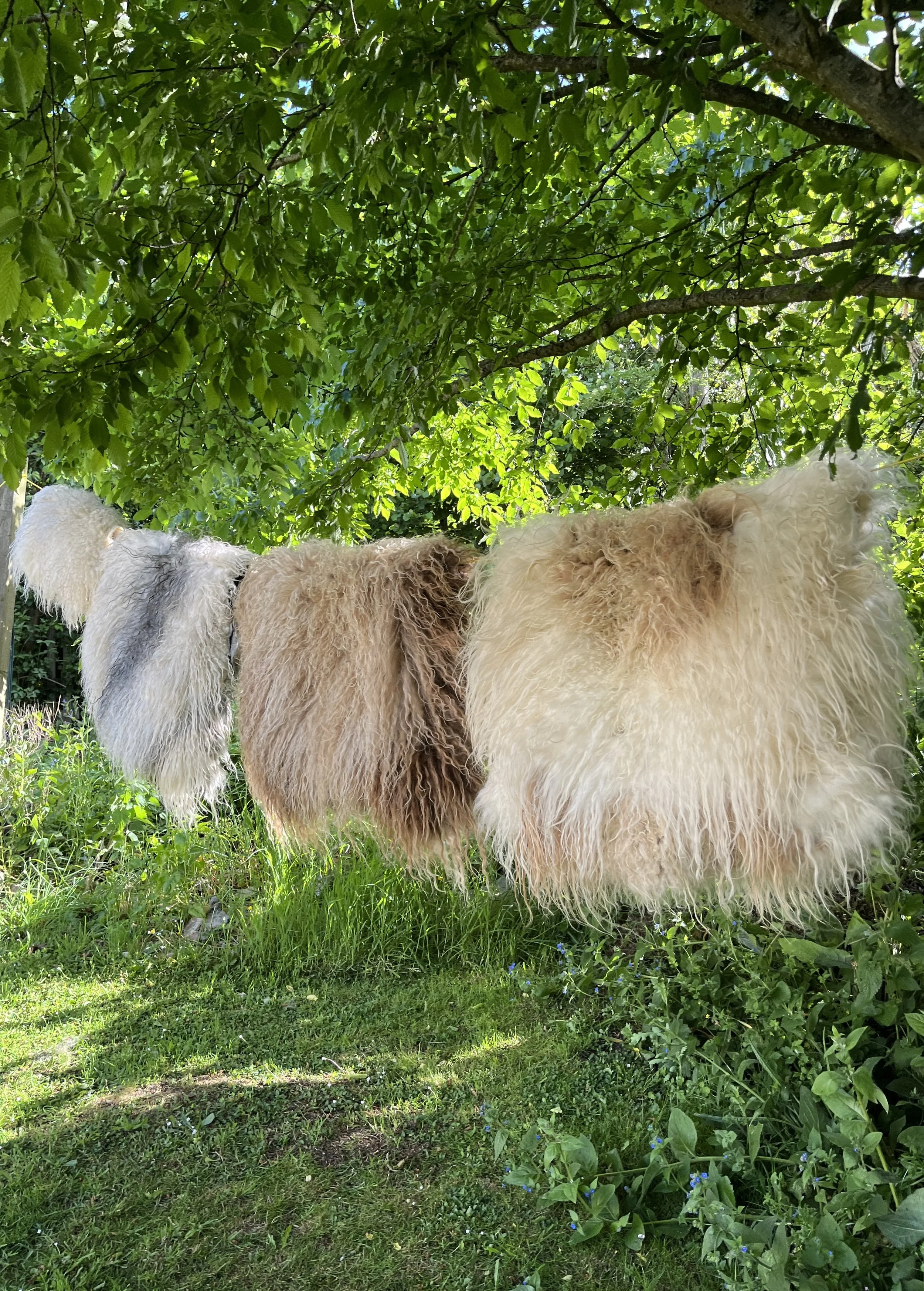 Pony, Little Bear and One Nuts finished fleeces drying in the sun
