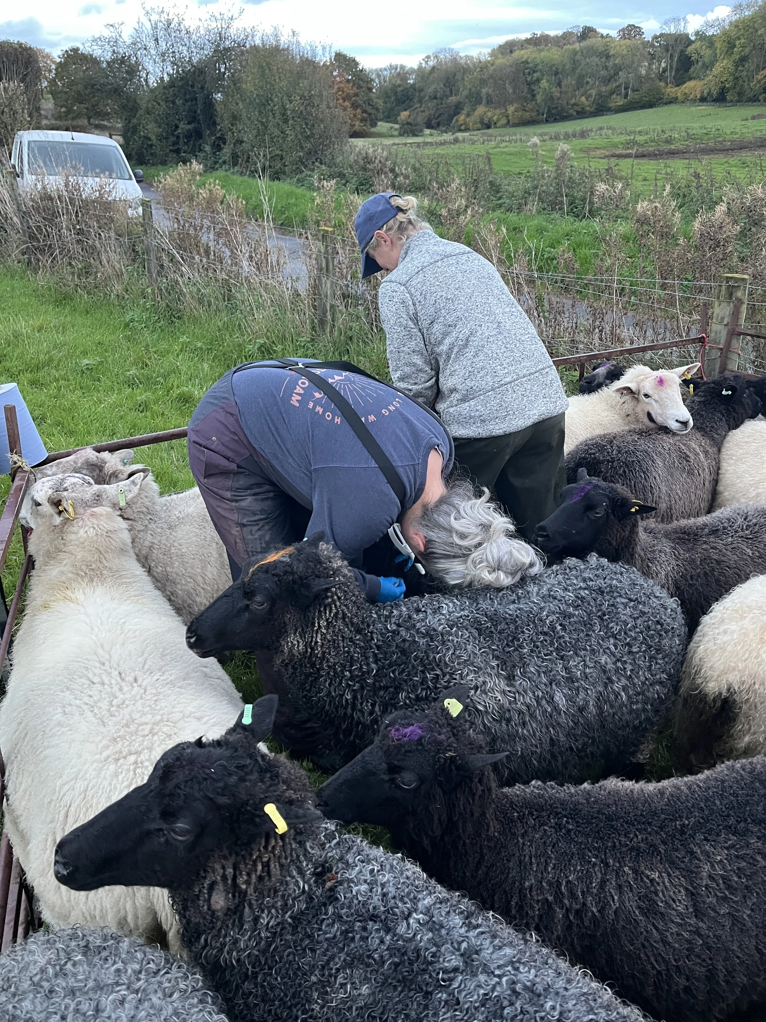 With full time jobs, lambing can seem to go on and on however few ewes we have, so in October we used CIDRs. This enables us to synchronise breeding and therefore lambing. We’re then there all the time if anything goes wrong. Like a proper shepherd! Victoria came to show me what to do and after a consistent stream of innuendos it was over. 12 days later we sent 10 Icelandic and Shetland ewes over to Ana’s ram Moss who is hunk of an Icelandic ram. I can’t wait to see what the ewes produce. We scanned in February and have a mix of triplets, twins and a single. We had five go to a crossbreed ram. We’ll see what those produce in a few weeks.