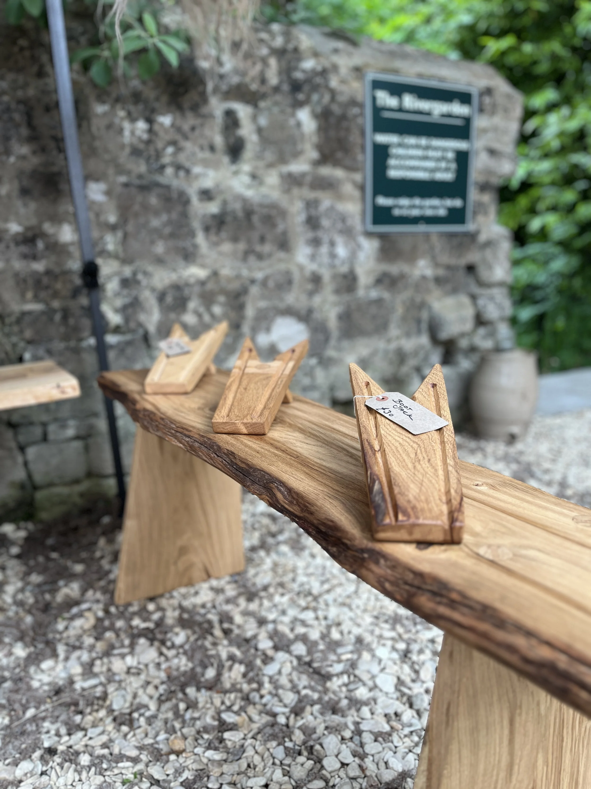 A few bootjacks and a gorgeous bench Gary made.